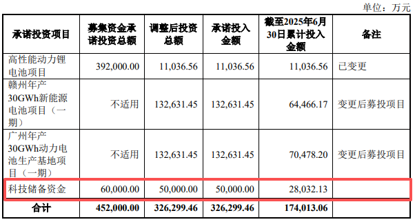 據悉,孚能科技“科技儲備資金”承諾投入金額共5億元,截至2025年6月30日累計投入金額約2.8億元,項目由“高能量密度、高倍率電芯用新型正極、負極材料開發及應用”、“高比能量、高安全性固態電池開發”、“儲能及中、重型商用車輛鋰離子電池產品開發及產業化”、“高度集成的無線智能AI功能BMS”四個子項目構成。