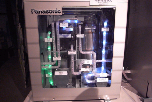 2010年世博會,日本館松下電器展出了旗下的綠色環保家用燃料電池,本產品在2009年已經實現全球首次量產,其中輸出功率為1KW、可為普通家庭提供60%電力的產品。