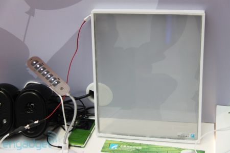 在2010年臺北國際光電周上,臺灣工業(yè)研究院與秦華企業(yè)展示了這款他們合作的新產(chǎn)品。這款玻璃中含有太陽能基板,太陽光照射進去時,會通過基板的擴散和反射作用最終將光集中在窗框內(nèi)部的太陽能板上,從而進行發(fā)電。這款玻璃窗并不是完全透明的,稍微有些發(fā)白,并有不同透明程度的款式可供選擇。發(fā)白程度越深,光越不容易透過,發(fā)電效果就越好。圖中大小的玻璃,大約可以提供2瓦的電力,可以驅(qū)動小風扇或是小燈泡。雖然這款產(chǎn)品還沒有明確的上市日期,但是其發(fā)展前景非常廣闊。