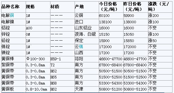2012年3月7日天津有色金屬市場行情